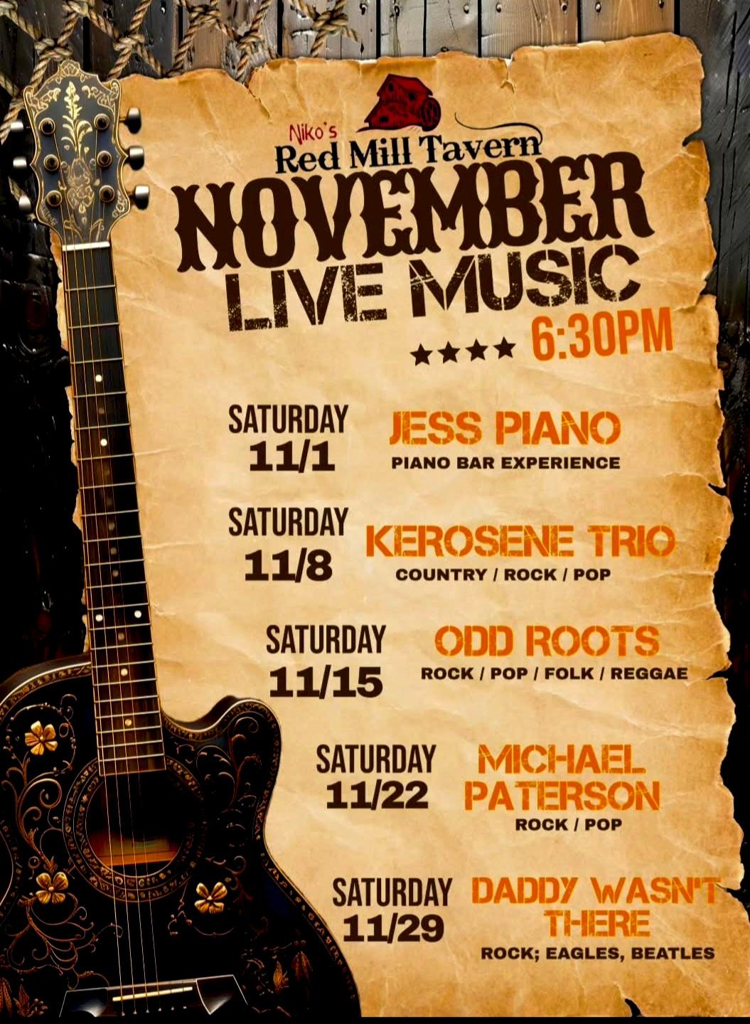 Niko's Red Mill Tavern in Woodstock is hosting great live music throughout the month of November.