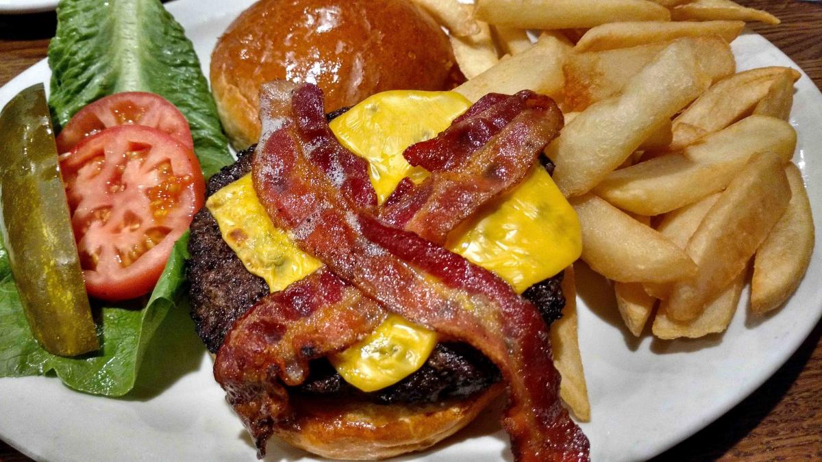 The famous bacon cheeseburger at Red Ox Restaurant in Hampshire