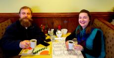 Father and son enjoying breakfast at Annie's Pancake House in Skokie